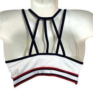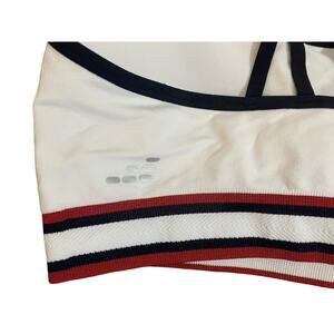 BCG Women's White Texture Stars w Blue/Red Accents Low-Support Sports Bra Size L
