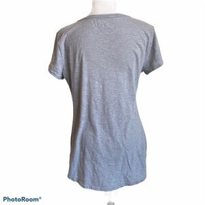 Features: V-neck tee shirt in modified burnout knit. Size tag is gone so PLEASE check measurement photos.
