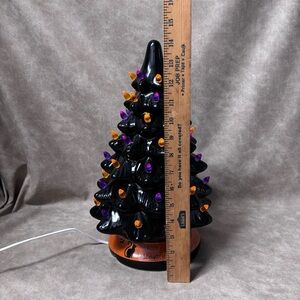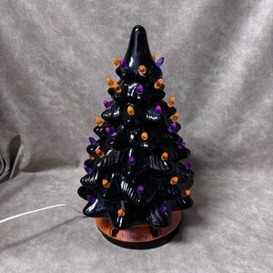 Best Choice Products 14in Pre-Lit Ceramic Tabletop Halloween Tree, Holiday Decoration w/Orange & Purple Bulb Lights, in excellent condition