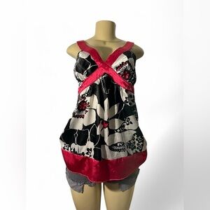 Black & red floral print cami top with red ribbon detail #y2kfashion #fairycore #retro #vintage ITEM #205 FIT M-L