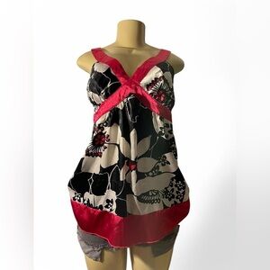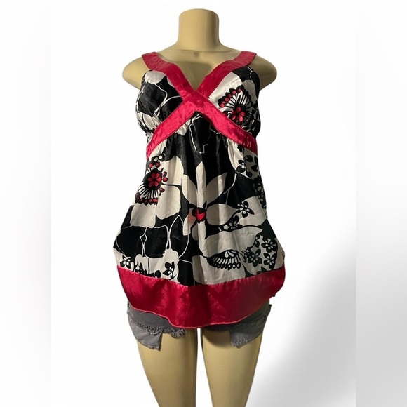 Black & red floral print cami top with red ribbon detail #y2kfashion #fairycore #retro #vintage ITEM #205 FIT M-L