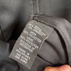 Super fun and flirty. This is a sleek, black short-sleeved dress featuring vibrant floral embroidery. Cap sleeves are sheer, the mesh side panels are lined. The most distinctive feature is the colorful, intricate floral embroidery that adorns the shoulders/sleeves and extends down the sides of the dress.