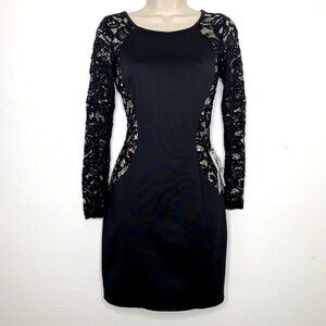 BCX Black Lace & Sequins CUT OUT ILLUSION Bodycon MINI DRESS Sz 5 Whimsigoth Y2K