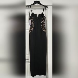 Elegant maxi dress with intricate lace and sequin panels. Perfect for evening wear.