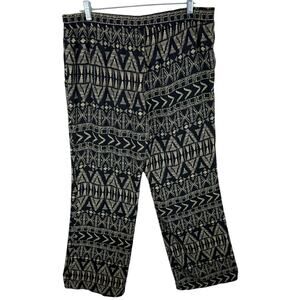 BCX Black Tan Patterned Lightweight Elastic Waist Straight Leg Pants Size XL