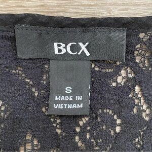 BCX Black Top With Smocked Waistband and Cut Outs on Back. Blouse had built-in shell and quarter length sleeves. In great preowned condition.