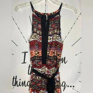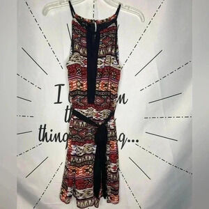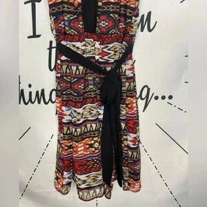 BCX Chiffon Aztec Tribal Western Braided Straps Dress