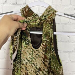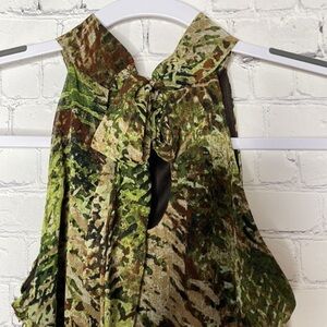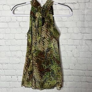 BCX Chiffon Camo Camouflage Sleeveless Summer Halter Top w Front Ruffles Size S