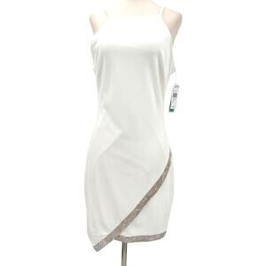 BCX DRESS sz L Juniors Off White Asymmetrical Rhinestone dress NWT B144 flaw