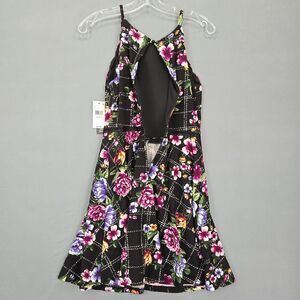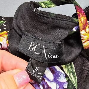 BCX Dress Black Sundress NEW $59 Preppy Floral Midi Stretch Women Size 5 Juniors