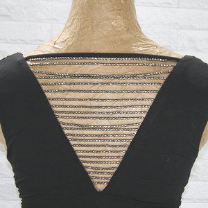 BCX Dress Cocktail Prom Bodycon Cocktail Beaded Embellished Ruched Black XS