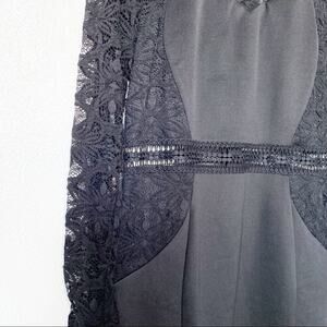 BCX Dress Juniors embroidered waist dress with lace sleeves. Pulls on the sleeves, no large holes. Some pilling on the body.