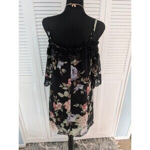 BCX Dress Junior Women's M Off Shoulder Floral Black Lace Flowy Shift Romantic