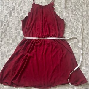 Step into elegance with this BCX mini dress, featuring a vibrant red hue and a chic halter neckline.