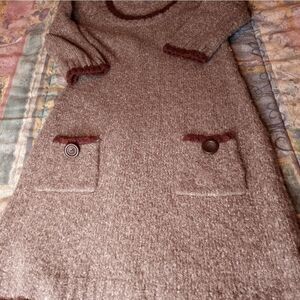 BCX Dress M Knitted 3/4 Sleeve Brown Pockets Cotton Wool Blend Women's