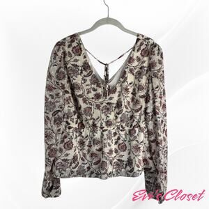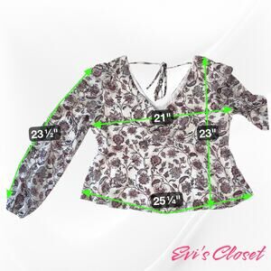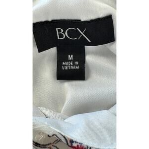 BCX Floral White Pink Embossed Women's Blouse. Rushed V.Neck Sz M.