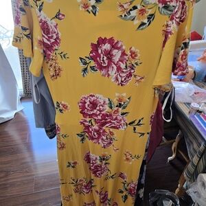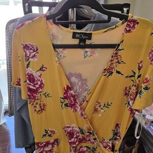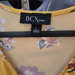BCX Floral Wrap Dress - Yellow and Pink. EUC size L