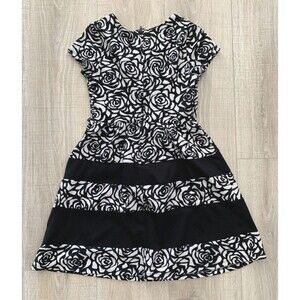 BCX Girl Black White Floral Formal Party Dress Girls Size 10