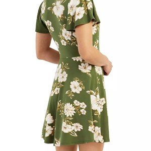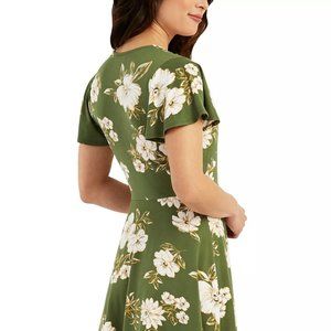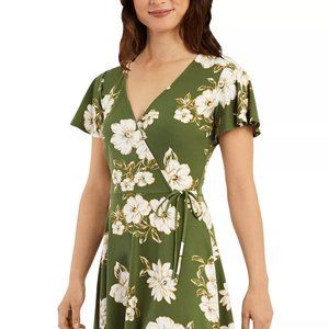 BCX Juniors' Faux-Wrap Flutter-Sleeve Dress Green Floral Size XL