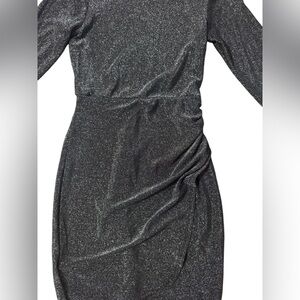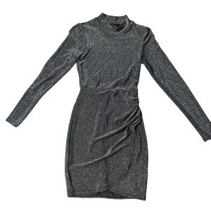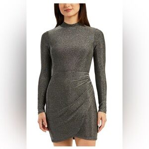BCX Juniors Metallic Ruched Tulip Hem Mock Neck Long Sleeve Dress Stretch XXS