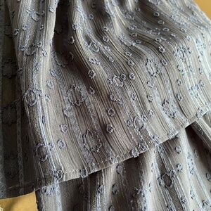 Product Details You'll love all of the details on this Swiss-dot covered dress from BCX, smocked at the waist for added shape. Fitted through the chest and waist; structured A-line skirt sits slightly over hips Smocked at neckline and waist; metallic stripes; tiered skirt Imported Mock neck; A-line silhouette Lined Back keyhole with button closure Short flutter sleeves