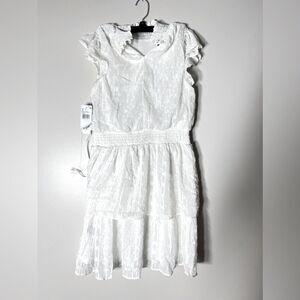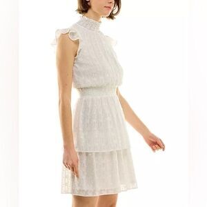 BCX Juniors' Swiss-Dot Dress,New off white Short sleeves Smocked neckline Large