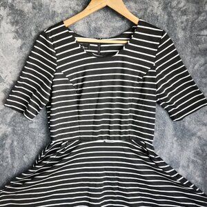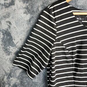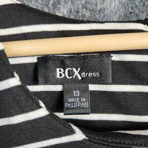 BCX Juniors Women Black 1/2 Short Sleeve Fit + Flare Dress Size 13 Striped Zip