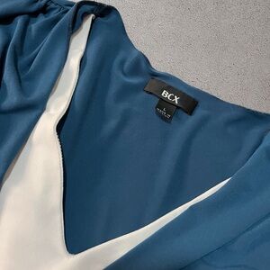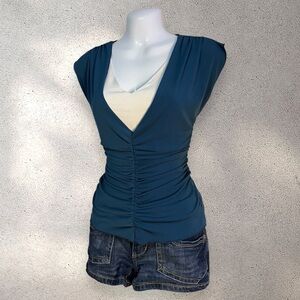 BCX PREPPY BLUE AND WHITE RUCHED TOP
