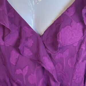 BCX Purple Jacquard Textured Floral Off-the-Shoulder Asymmetrical Hi-Lo Dress Ruffled V-Neckline, Tie Belt at Waist, Fit & Flare Silhouette. Feminine and Romantic... perfect for Cocktails, Date Night or a Wedding MSRP: $69