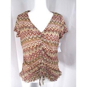 BCX Rusty Brown Tan Chevron Top with Bottom Tie Detail Lined L NWT (B7)