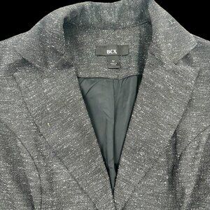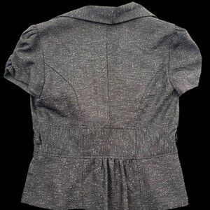 The BCX Short Puff Sleeve Jacket combines the structure of a jacket with the versatility of a shirt, featuring a three-button front for easy styling. Its puff sleeves and gathered detailing on the back add subtle volume and shape, while the V-neck collar offers a polished finish. Perfect for dressing up or down, this black shacket is a sophisticated layering piece that enhances any outfit with expert tailoring and modern design.