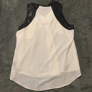 BCX | Sleeveless White Ruffle Blouse w/ Black Pleather Detailing | M