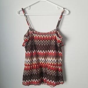 BCX Spaghetti Strap Chevron Print Knit Tank Top Size XS Red, Brown