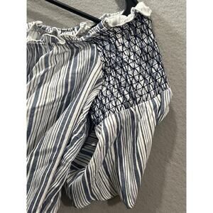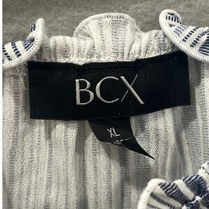 BCX Top Women's XL Blue White Stripe Off Shoulder Front Tie Stretch
