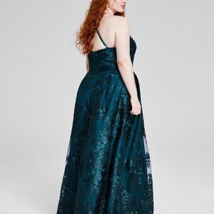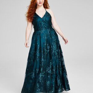 BCX Trendy Plus Size Strappy Embroidered Sleeveless Gown – Emerald Green 14W NWT
