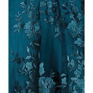 Turn heads in this stunning floor-length emerald green gown by BCX. Featuring allover floral embroidery on breathable mesh, this formal dress combines elegance and comfort with adjustable straps and a beautifully lined silhouette.