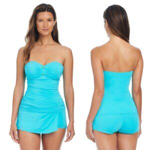 Ruffled sleeves with cold-shoulder cutouts; crisscross straps at back
