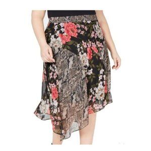 BCX Women's Cold-Shoulder Plaid Floral Short Sleeve Blouse Black White XS NWOT