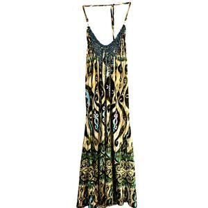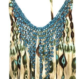 BCX Women's Dress Large L Green Long Sleeveless Beads Sun Misses Size 12 14