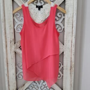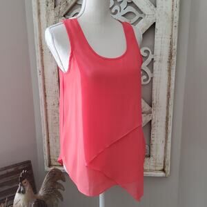 Coral sleeveless layered asymmetric mesh crochet lace tank top by BCX in a size junior medium.