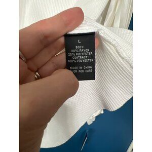 BCX Womens Ribbed Knit Sweater With Pleated Balloon Sleeves In White