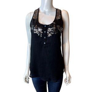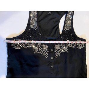 BCX Womens Sequin Detail Tank Top Front Button Racerback Black Size Medium
