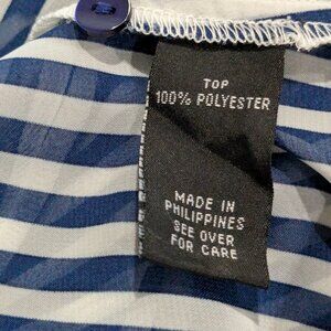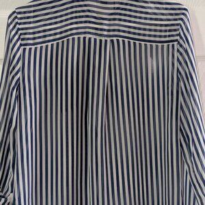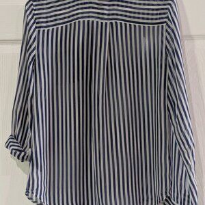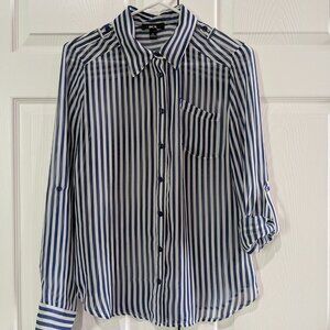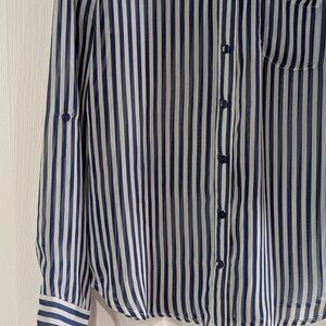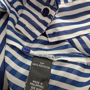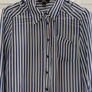 BCX Women's Sheer Striped Blouse Blue White, Size M, Long Sleeve, Button Front