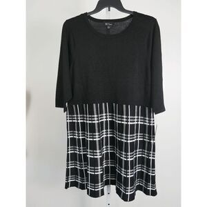 Look pretty in plaid this season with BCX's plus size sweater dress, featuring a fit & flare design.