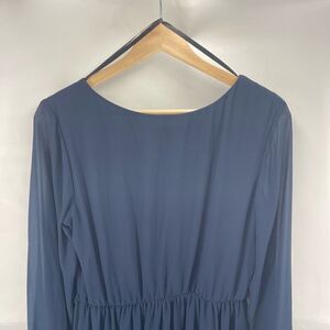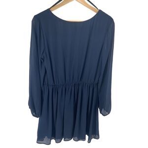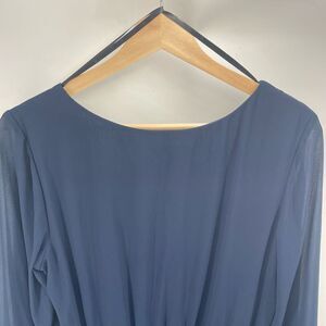 BCX Womens Long Sleeve Dress Pleated Mini Lined Chiffon Navy Blue Large