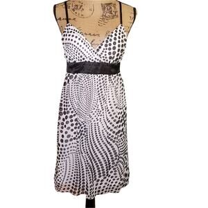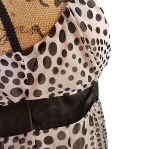BCX Y2K Babydoll Sheer Overlay Ribbon Tie Black and White Polka Dot Dress Sze M