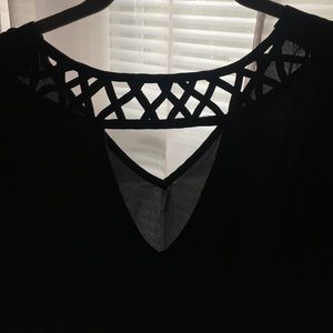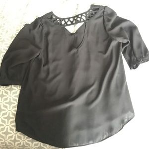BCX blouse. Lose fitting blouse. The detail on the back looks gorgeous with dressy pants, skirts, etc.