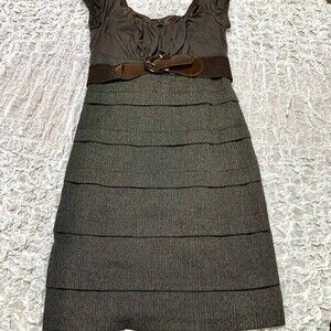 BCX brown dress vintage style bodycon short sleeve with belt dress size 7