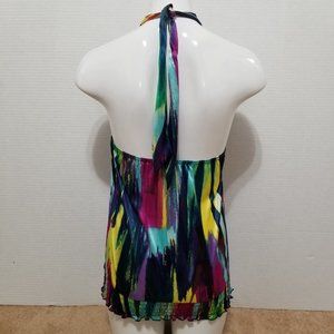 BCX top Small multicolor sleeveless halter colorful smocked bottom Y2K