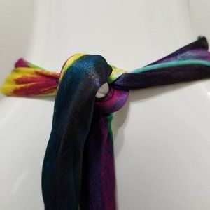 Multi-color sleeveless halter top with a smocked bottom. The top part of the front is lined. Very Y2K!